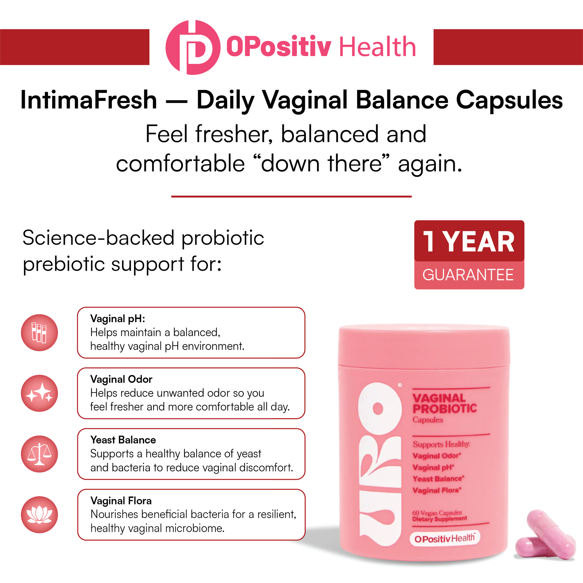 Join the thousands of women who’ve restored their confidence with Opositiv™ IntimaFresh pH & Odor Control Probiotic—your all-natural, clinically proven solution for maintaining healthy pH, supporting beneficial bacteria, and achieving lasting freshness every day.